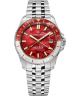 Limitowany do 500 sztuk zegarek męski Venezianico Xi'an Automatic Limited Edition Nereide-Xian to wyjątkowy model inspirowany podróżami i nowoczesnym wzornictwem. Srebrna koperta wykonana ze stali szlachetnej 316L o szerokości 39 mm i grubości 12 mm została połączona ze stalową bransoletą o szerokości 20 mm, tworząc elegancką i spójną całość. Czerwony cyferblat z masy perłowej przyciąga uwagę niepowtarzalną strukturą i został uzupełniony o liniowe indeksy oraz podświetlenie Super-LumiNova, które poprawia czytelność po zmroku. Tarczę osłania szafirowe szkiełko z powłoką antyrefleksyjną, zabezpieczające ją przed działaniem czynników zewnętrznych. Model działa w oparciu o automatyczny mechanizm Miyota 9075 z rezerwą chodu do 42 godzin. Zegarek oferuje funkcję GMT oraz podwójne wskazanie czasu, a dwukierunkowy bezel wspiera obsługę tej funkcji. Zakręcana koronka i wodoszczelność 100 metrów pozwalają na pływanie powierzchniowe, czyniąc produkt praktycznym również podczas podróży.