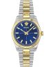 Versace Millenium Lady VE0E00325 to damski zegarek w dwukolorowym wydaniu, łączący srebro i złoto na kopercie oraz bransolecie ze stali szlachetnej. Niebieska tarcza nadaje modelowi wyrazisty charakter. Zegarek działa na mechanizmie kwarcowym i został wyposażony w szafirowe szkiełko, które jest trudne do zarysowania. Wodoszczelność 30 metrów chroni przed niewielkimi zachlapaniami, np. podczas mycia rąk.