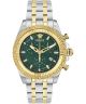 Zegarek męski Versace Fornax VE0W00425 wyróżnia się eleganckim połączeniem srebra i złota, które podkreśla jego klasyczny, ale nowoczesny charakter. Koperta wykonana ze stali szlachetnej 316L o szczotkowanym wykończeniu została uzupełniona o złoty bezel, dodający modelowi wyrazistości. Dwukolorowa bransoleta ze stali szlachetnej zapewnia wygodę noszenia i spójny wygląd z kopertą. Wewnątrz pracuje mechanizm kwarcowy, a tarczę zabezpiecza szkło szafirowe. Zakręcany dekiel gwarantuje szczelność, natomiast wodoszczelność na poziomie 50 metrów chroni zegarek podczas kontaktu z wodą w codziennych warunkach.