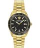 Versace V-DOME 42 mm VE8E00624 to męski zegarek o wyjątkowym, luksusowym charakterze. Złota bransoleta i koperta wykonane z wysokiej jakości stali szlachetnej doskonale komponują się z elegancką, czarną tarczą, na której znajduje się złoty symbol Versace. Zapięcie motylkowe z dodatkowymi zabezpieczeniami gwarantuje komfort i bezpieczeństwo noszenia. Zegarek jest zasilany kwarcowym mechanizmem Swiss Made i chroniony przez szafirowe szkło, które zapewnia odporność na zarysowania. Wyposażony w funkcję datownika, oferuje również wodoszczelność na poziomie 5 ATM.