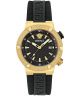 Versace Greca Logo VE8G00324 to męski zegarek o sportowym i eleganckim charakterze, wyposażony w szwajcarski mechanizm kwarcowy. Złota stalowa koperta doskonale kontrastuje z czarną tarczą i gumowym paskiem, zapewniając stylowy wygląd. Szafirowe szkiełko oraz wodoszczelność do 100 metrów sprawiają, że zegarek jest trwały i idealny zarówno na co dzień, jak i do sportowych aktywności.