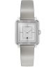 Zegarek damski Yema Radiance YMHF1586-FF to delikatny model o eleganckiej formie. Srebrna koperta ze stali szlachetnej 316L o szerokości 24 mm i grubości 6 mm została połączona ze skórzanym paskiem w szarym kolorze o szerokości 14 mm. Biały cyferblat o fakturowanej powierzchni osłania szafirowe szkiełko, które chroni tarczę przed działaniem czynników zewnętrznych. Polerowane wykończenie koperty podkreśla biżuteryjny charakter produktu. Model działa w oparciu o kwarcowy mechanizm Ronda 1062. Wodoszczelność 30 m oznacza odporność na drobne zachlapania, na przykład podczas mycia rąk lub w czasie niewielkiego deszczu.