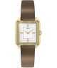 Yema Radiance YMHF1587-1BU to damski zegarek zaprojektowany z myślą o minimalistycznym wyglądzie i codziennym użytkowaniu. Koperta wykonana ze stali szlachetnej IP w złotym kolorze została zestawiona z brązowym, skórzanym paskiem, tworząc ciepłą i spójną kompozycję. Biały cyferblat przykrywa szafirowe szkiełko osłaniające jego powierzchnię. Smukła konstrukcja z kopertą o grubości 6 mm sprawia, że model prezentuje się lekko na nadgarstku. Urządzenie działa dzięki kwarcowemu mechanizmowi Ronda 1062, który odpowiada za funkcjonowanie zegarka. Wodoszczelność 30 m zapewnia ochronę przed drobnymi zachlapaniami w codziennych sytuacjach.