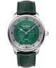 Zegarek męski Zeppelin Friedrichshafen 8556-2 to elegancki model, który łączy klasyczny styl z nowoczesnymi detalami. Wyposażony w automatyczny mechanizm, charakteryzuje się kopertą ze stali szlachetnej o srebrnym kolorze, która ma szerokość 40 mm. Zielona tarcza zegarka przykrywa szkło szafirowe, co dodaje mu wyjątkowego charakteru. Zegarek posiada skórzany pasek w tym samym zielonym odcieniu, co tarcza, co tworzy spójną całość. Wodoszczelność 50 m sprawia, że jest to model, który radzi sobie z codziennymi wyzwaniami. Dodatkowo, zegarek wyposażono w zakręcaną koronkę, co zwiększa jego trwałość. To doskonały wybór dla mężczyzn ceniących sobie zarówno funkcjonalność, jak i estetykę w dodatkach.