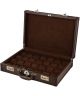 Walizka Leanschi Classic Brown WCAS-CHOC to elegancki model w kolorze brązowym, wykonany ze skóry poliuretanowej wzmocnionej wytrzymałą skórą SAFIANO. Produkt został wyposażony w dwa mechaniczne zamki połączone ze skanerem linii papilarnych, co skutecznie utrudnia dostęp osobom nieupoważnionym. Wnętrze oferuje 28 przegródek, dzięki czemu można bezpiecznie przechowywać i transportować kolekcję zegarków. Walizka waży 4,8 kg, co zapewnia odpowiednią stabilność i solidność konstrukcji.
