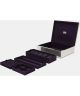 Pudełko Wolf 190005 w limitowanej edycji z okazji 190-lecia marki to wyjątkowy hołd dla tradycji rzemiosła. Inspirowane jest historycznymi projektami Philippa Wolfa I. Wnętrze wykończono fioletową podszewką Ultrasuede LusterLoc™, a cztery wyjmowane tacki umożliwiają przechowywanie pięciu zegarków oraz biżuterii i drobnych akcesoriów.