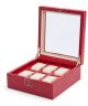 Pudełko Wolf Palermo 213872 zostało obite skórą naturalną i wyposażone w zapięcie na kluczyk. Pod przeszkloną pokrywą znajdziemy 6 praktycznych przegródek na zegarki.