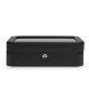 Za pomocą eleganckiego pudełka na zegarki Wolf Windsor 458403 w łatwy sposób uporządkujesz swoją kolekcję zegarków. W środku jest wydzielonych dziesięć przegródek. Pudełko wykonano z gładkiej wegańskiej skóry, miękkiej podszewki i chromowanych elementów. Wieczko produktu jest przeszklone. Całość można zamknąć na kluczyk. Gwarancja produktu wynosi 2 lata i jest ważna od daty zakupu.