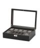 Wolf Howard 465203 to pudełko na zegarki i biżuterię w czarnym kolorze, które zostało wykonane z gładkiej skóry naturalnej. Jest on wyposażony w 7 przegród na zegarki, 8 przegródek na spinki do mankietów lub biżuterię oraz jeden większy schowek. Posiada on zamszową podszewkę w kolorze szarym. Produkt objęty jest dwuletnią gwarancją.