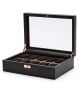 Wolf Axis 488116 to eleganckie pudełko na zegarki. Ma obicie wykonane z wysokiej jakości skóry wegańskiej, które zapewnia stylowy wygląd. Posiada zapięcie na kluczyk i 10 przegródek wyłożonych miękkimi poduszeczkami.
