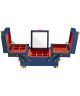 Wolf Marla Aaron Baby Everything 730200 w granatowej odsłonie to elegancki organizer na biżuterię. Inspirowany koszyczkami do szycia design, skóra wegańska, mosiężne detale i pomarańczowa podszewka tworzą wyjątkowy kontrast. Wnętrze kryje liczne praktyczne rozwiązania: tackę z rolkami na pierścionki, trzy przegrody, dwie ukryte komory, haczyki na naszyjniki, kieszeń oraz kopertę. Składane lusterko ułatwia codzienne użytkowanie, a system LusterLoc™ chroni biżuterię przez długie lata.