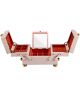 Różowe pudełko Wolf Marla Aaron Baby Everything 730300 to idealny organizer dla miłośniczek subtelnych, kobiecych akcentów. Wykonane z wegańskiej skóry, zamykane na kłódkę i ozdobione mosiężnymi detalami, przyciąga uwagę pastelowym odcieniem i pomarańczową podszewką. W środku znajdziesz tackę z rolkami na pierścionki, przegródki, ukryte schowki, haczyki, kieszeń i kopertę. LusterLoc™ zapewnia biżuterii blask przez lata.