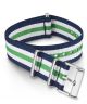 Wielokolorowy, wytrzymały Timex Double-Layered Nylon Slip-Thru 20 mm TW7C07000 to nylonowy pasek NATO. Został wykonany z bardzo wytrzymałego i wygodnego w użytkowaniu materiału, który nie uczula i nie powoduje podrażnień skóry. To sprawia, że pasek doskonale sprawdzi się w każdej sytuacji i będzie świetnym dodatkiem. Jego biało-niebiesko-zielona kolorystyka urozmaici i odmieni posiadany zegarek. Pasek dostępny jest w rozmiarze 20 mm. Model posiada srebrną klamrę.