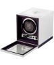 Wolf Silver Single 190003 to luksusowy rotomat przeznaczony do nakręcania jednego zegarka automatycznego, wyróżniający się elegancką srebrno-fioletową kolorystyką. Obudowę pokryto powłoką z czystego srebra próby 999 z dekoracyjnym giloszowanym wzorem typu engine turned, który nadaje całości wyjątkowy charakter. Drzwi osadzono na zawiasach fortepianowych, a wnętrze wyłożono fioletową podszewką Ultrasuede z technologią LusterLoc™, pomagającą chronić zegarek przed zarysowaniami. Zastosowano dynamiczny mankiet z blokadą, który stabilnie utrzymuje czasomierz w rotomacie. Urządzenie oferuje obroty w prawo, w lewo oraz w obu kierunkach, funkcję 10-sekundowego opóźnienia startu oraz powrót zegarka do pozycji wyjściowej po zakończeniu cyklu. Dostępna jest również możliwość ustawienia rezerwy chodu od 6 do 72 godzin w odstępach co 6 godzin. Rotomat może być zasilany prądem zmiennym przy użyciu dołączonego uniwersalnego adaptera lub bateriami D-Cell bądź litowymi. Model ozdobiono ekskluzywnym logo Wolf z herbem 190-lecia, w zestawie znajduje się srebrna ściereczka, a całość zapakowano w firmowe opakowanie Wolf przygotowane z okazji 190. rocznicy marki.