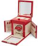Wolf Palermo 213772 to 2 w 1, czyli rotomat i szkatułka na biżuterię. Wykonany został z wegańskiej skóry w dwóch kolorach – czerwonym i beżowym. Jest w nim miejsce na jeden zegarek, a także naszyjniki (otwierane boki), pierścionki (10 rolek w górnej części) i różnego typu drobiazgi. Rotomat ma programy prawo/lewo – dwukierunkowy, ilość obrotów wynosi od 300 do 1200 TPD (obrotów dziennie). Model wyposażono w opatentowany system blokujący, zapewniając zegarkowi bezpieczne dopasowanie. Jest możliwość ustawienia rezerwy chodu od 6 do 72 godzin. Rotomat-szkatułka ma zamykaną szklaną pokrywę. Gwarancja producenta obejmuje 2 lata.