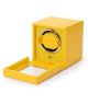Wolf Cub Z Osłoną 461192 to praktyczny i jednocześnie podręczny rotomat z miejscem na jeden zegarek i opatentowaną blokadą bębna rotującego. Ekskluzywne wykonanie i stylowy wygląd to zasługa wykorzystania wysokiej jakości skóry wegańskiej w żółtym kolorze. Urządzenie ma programy prawo/lewo, ilość obrotów wynosi 900 TPD i wbudowane programy rotacji przerywanej z fazami pauzy i uśpienia. Rotomat jest idealny dla osób kolekcjonujących zegarki i dbających o ich bezpieczne przechowywanie.