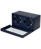 Wolf Double Cub Z Osłoną 461217 to praktyczny i stylowy podwójny rotomat. Opatentowany mankiet blokujący zapewnia ochronę zegarków w nim umieszczonych. Urządzenie ma szklaną osłonę i jest wykonane z wysokogatunkowej wegańskiej skóry w granatowym kolorze, co podkreśla jego klasę i ekskluzywny wygląd. Rotomat może wykonać do 900 obrotów dziennie (900 TPD), ma opatentowane programy rotacji (rotacja przerywana z fazami pauzy i uśpienia) oraz program prawo/lewo.