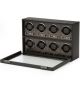 Ekskluzywny rotomat Wolf Axis 469703 z miejscem na 8 zegarków to nowoczesne urządzenie odpowiednie dla kolekcjonerów. Do jego wyposażenia należą programy prawo/lewo – dwukierunkowy. Ilość obrotów wynosi od 300 do 1200 TPD (obrotów dziennie). Model ma też podświetlany wyświetlacz LCD, funkcję regulacji obrotów oraz opatentowany system blokujący bębna rotomatu, zapewniając bezpieczne dopasowanie. Istnieje możliwość ustawienia rezerwy chodu od 6 do 72 godzin. Wykonany został z wysokiej jakości ciemnej skóry wegańskiej.